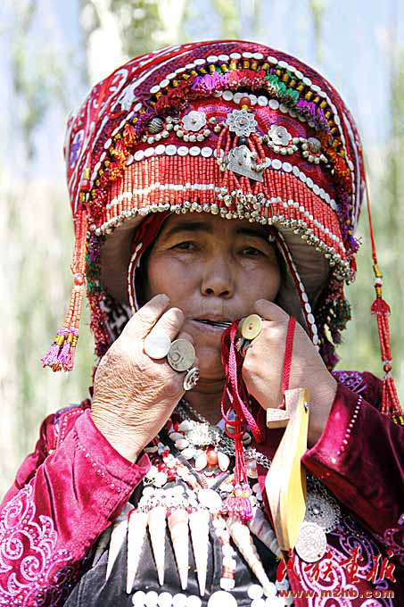“奧孜庫(kù)姆孜”是同時(shí)用嘴吹和用手指彈奏的樂(lè)器,琴上只有一個(gè)小小的鋼片用來(lái)彈奏。這種樂(lè)器只有柳葉大小。演奏時(shí),琴頭放入嘴里,抵于門齒之間,用食指彈奏鋼片,并同時(shí)在口腔內(nèi)呼吸運(yùn)氣進(jìn)行吹奏。在彈奏和呼吸之間奏出婉轉(zhuǎn)美妙的樂(lè)曲,因此被稱為柯爾克孜族的“美妙之口”。