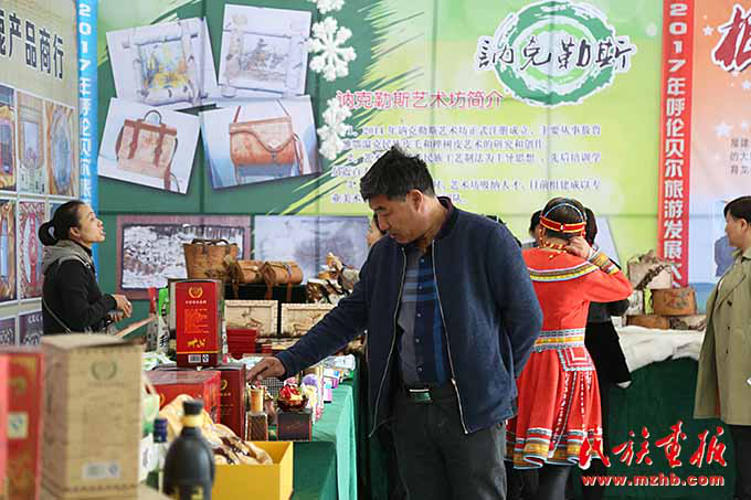 呼倫貝爾市旅游發(fā)展大會上,民族特色產品受到游客的歡迎