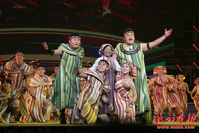 2016年第五屆全國少數(shù)民族文藝會(huì)演開幕式上,獨(dú)龍族歌舞《邊疆和北京在一起》藝術(shù)地表達(dá)了獨(dú)龍族人的喜悅,引發(fā)了觀眾強(qiáng)烈的共鳴(陳濤 攝影)