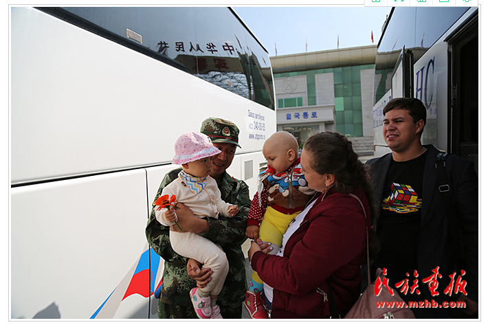 第一次來(lái)琿春旅游的俄羅斯游客亞娜帶著她1歲的寶寶剛?cè)刖常∏捎龅綆Ш⒆映鰜?lái)的中國(guó)邊防戰(zhàn)士,他們便打起了招呼