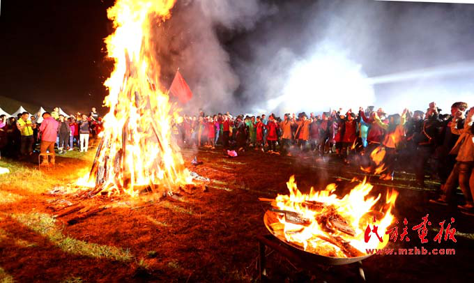 來觀看火把節(jié)的觀眾密密麻麻坐滿火把場(chǎng)周圍的山坡,場(chǎng)面十分壯觀