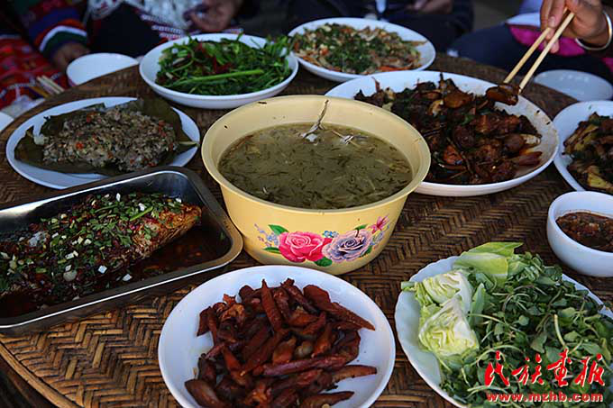 布朗族的節(jié)日,同村的哈尼族來賀喜
