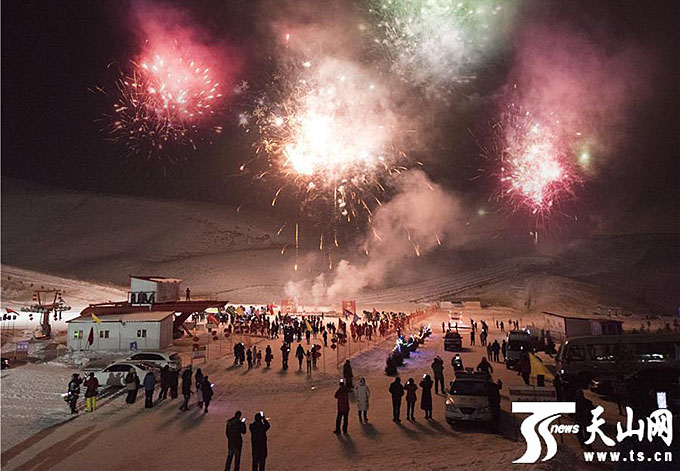 雪山煙花讓游客們紛紛駐足拍照留念