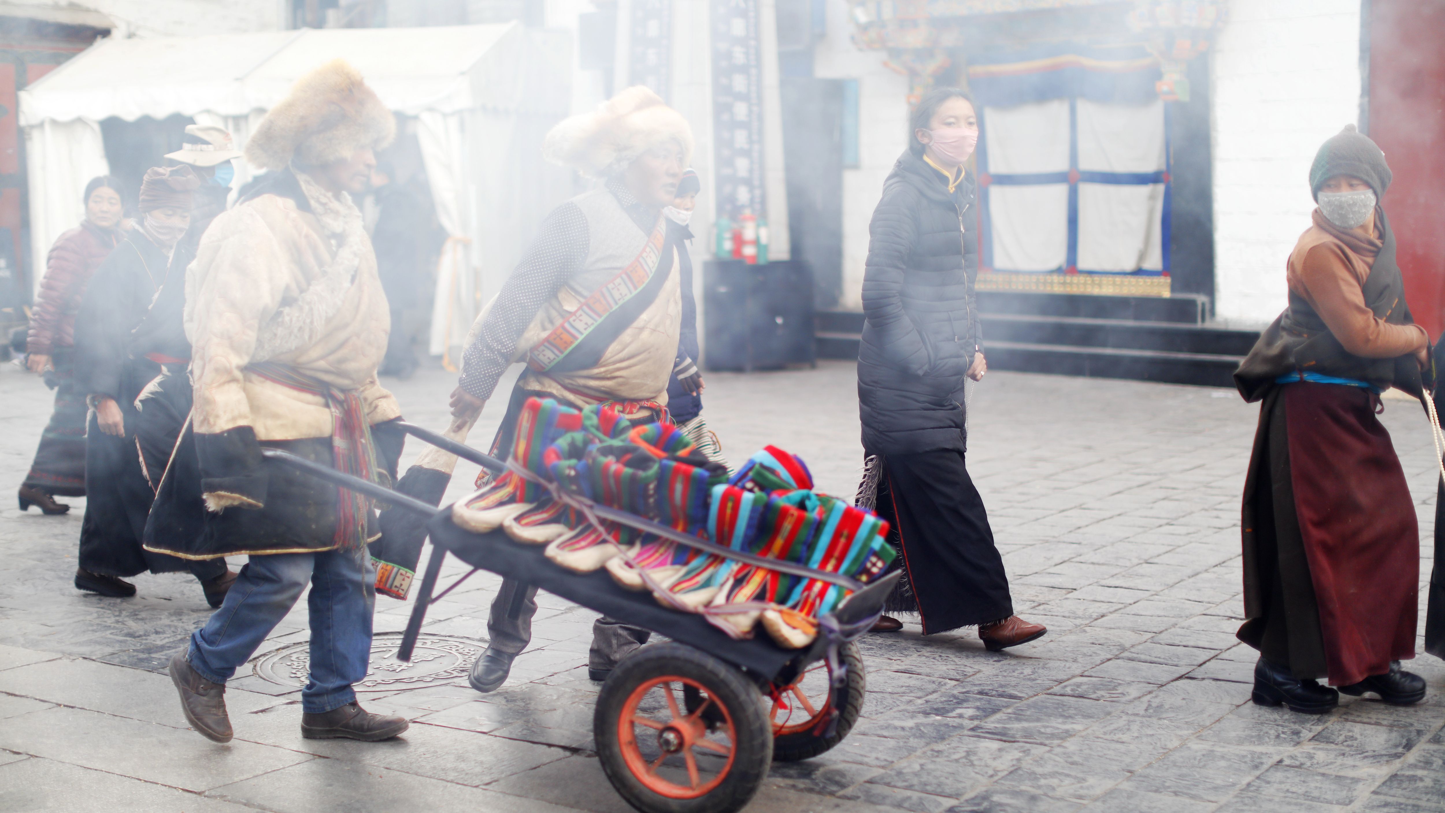 圖片說(shuō)明:在拉薩賣(mài)傳統(tǒng)牧靴