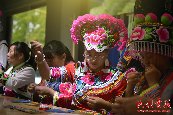 不忘初心,方能遠(yuǎn)行。在上下求索創(chuàng)意民族服飾的同時,盧潔瑩不忘致力于彝族傳統(tǒng)文化的發(fā)揚(yáng)與傳播。2016年起,索玉文化美學(xué)創(chuàng)意有限公司與楚雄市婦聯(lián)、彝繡協(xié)會共同主辦的,旨在幫助楚雄山區(qū)彝族婦女用傳統(tǒng)手工技藝精準(zhǔn)扶貧的培訓(xùn)項目“彝繡之夢”已開展了兩年?!皠?chuàng)業(yè)不易,要致富也要帶動各族同胞一起致富?!北R潔瑩說,“我們的培訓(xùn)班每年都開辦,就是要幫助繡女們走出大山,走進(jìn)大眾的視角,提供一個給她們展示與發(fā)掘精美彝繡技藝的平臺?!?/p>