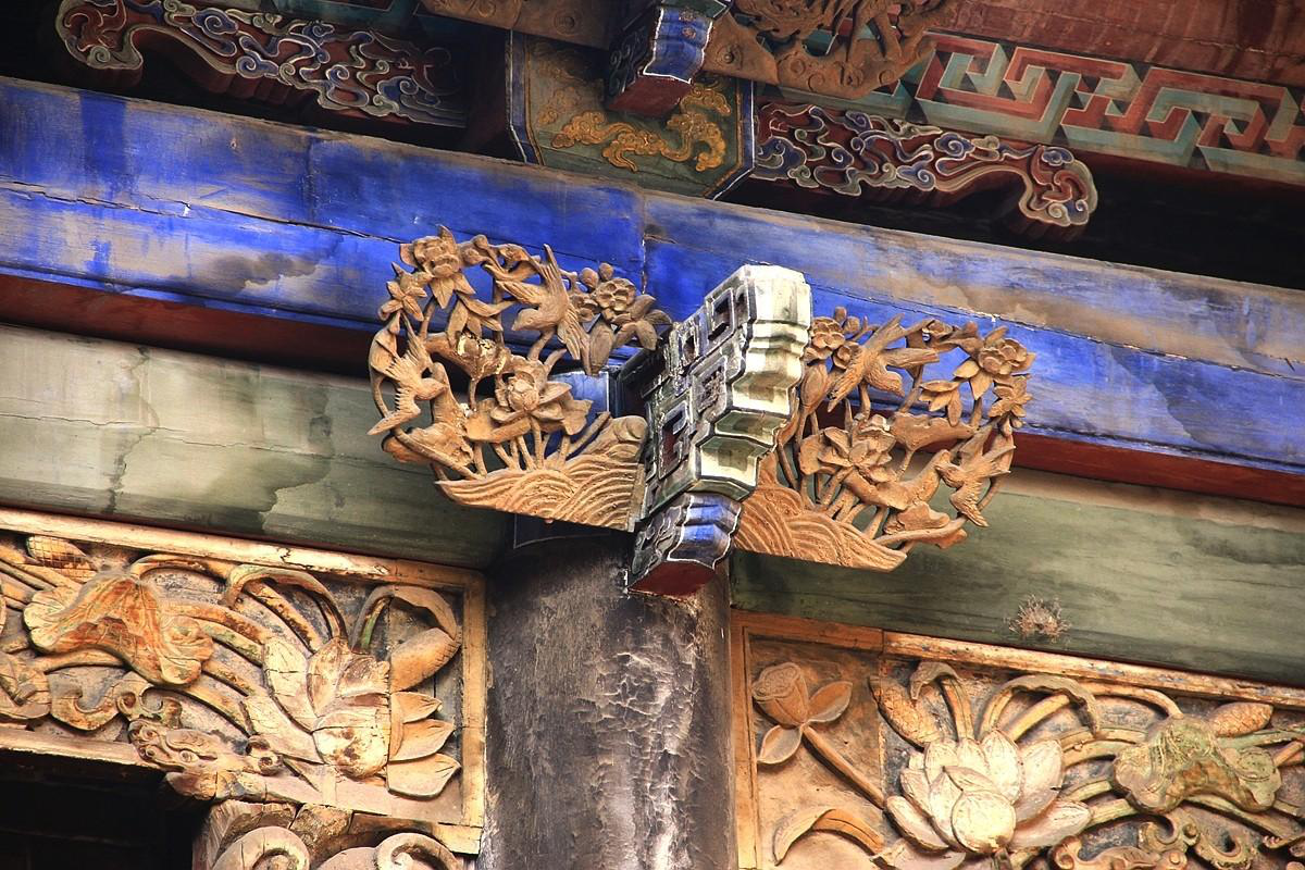 王家大院的磚雕、木雕、石雕,采用圓雕、浮雕、鏤雕等多種手法,運(yùn)用各種象征、隱喻、諧音,甚至禁忌的藝術(shù)形式,雕刻題材豐富、技法嫻熟,體現(xiàn)了清代建筑裝飾的風(fēng)格,將儒、道、佛思想與傳統(tǒng)民俗文化凝為一體。