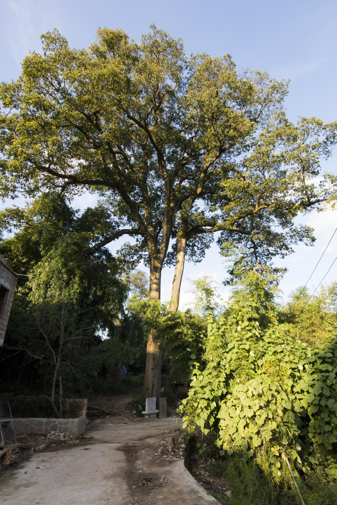批林村作為典型的少數(shù)民族村寨,較多的保留了民族文化。 村寨文化較為重要的一項是,信仰寄托。信仰寄托指的是村民將對于天地、先祖、神鬼媒介選擇為某一特定的事物。批林村的古樹,正是這樣的代表。批林村的古樹,樹干筆直,樹皮堅硬粗糙,樹干上已有苔綠攀附。時光如梭,滄海桑田,批林村的古樹依舊在迎風臨雨,昂然挺立。依舊作為批林村人的信仰寄托。