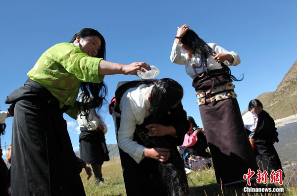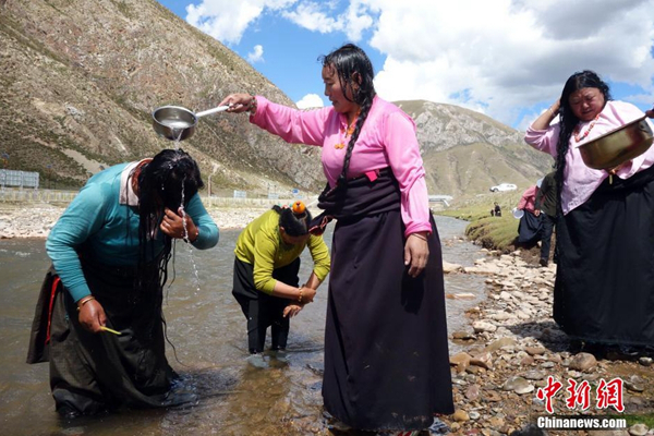 每年的夏末秋初,藏族同胞迎來一年一度的“沐浴節(jié)”。“沐浴節(jié)”,藏語稱為“嘎瑪日吉”,為期7天。這項(xiàng)古老習(xí)俗已經(jīng)延續(xù)了800多年。西藏流傳民謠,“待到棄山星升起,清凈溫暖好沐浴?!币簿褪钦f,在“棄山星(金星)””照亮雪域高原的七天里,藏族民眾在星光照耀過的水流中沐浴,可祛除身體病痛、心理雜念,全年健康。