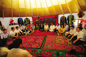 氈房里其樂融融,發(fā)言的不僅有哈薩克族,還有維吾爾族、蒙古族、漢族、回族等民族的群眾,大家表達了和睦相處的愿望,表達了對家鄉(xiāng)的贊美和熱愛。
