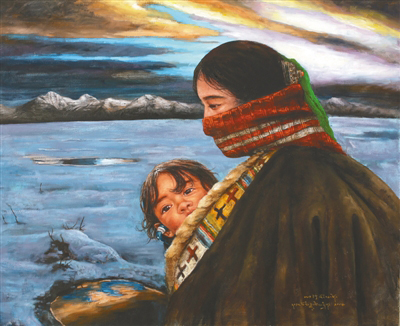 在西藏本土油畫藝術(shù)家中,用寫實手法進行藝術(shù)創(chuàng)作的畫家為數(shù)不多?!坝彤嫳环Q為‘世界語言’,它可以直觀地讓人明白繪畫者想表達的東西?!倍嗄陙恚髀嵋矆猿钟脤憣嵉姆椒▌?chuàng)作。