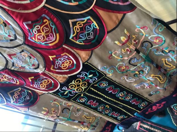 學(xué)校的博物館里陳列著那乃族文物,文物件數(shù)不是特別多,其中以服裝服飾類居多。
