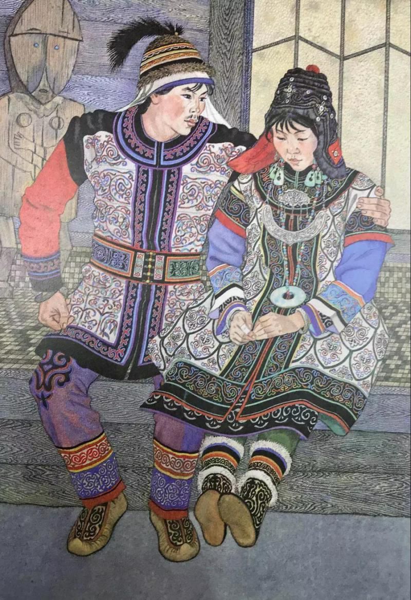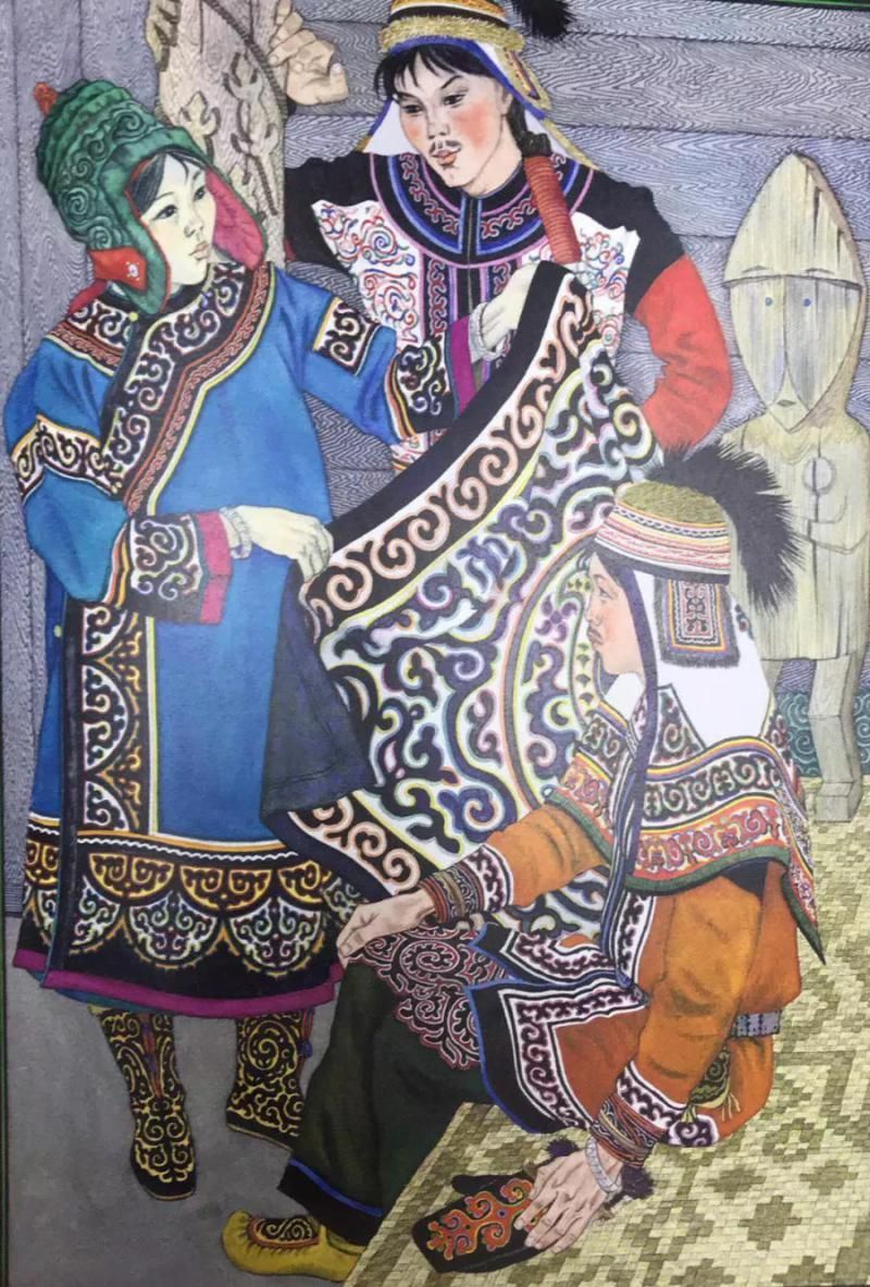 那乃族的插畫,有的用細(xì)膩的繪畫語(yǔ)言真實(shí)再現(xiàn)了那乃族的生活場(chǎng)景,有的用生動(dòng)形象的裝飾語(yǔ)言表現(xiàn)了那乃族的傳說(shuō)故事。