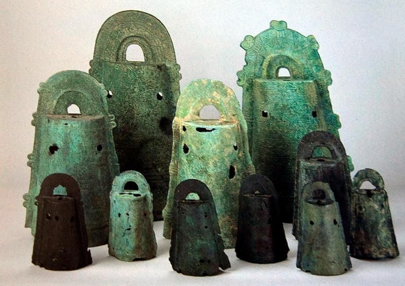 彌生時代也是機(jī)織布技術(shù)傳播,金屬器的使用和制造開始的時代。銅鐸,是日本本土生產(chǎn)的一種器型,為祈愿豐收時祭祀用的鳴鐘,常見于貴族墓葬中。使用的時候僅敲擊單獨(dú)一件,與中國成組配套使用的編鐘不同。