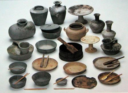彌生時代的名稱,源自1884年東京市本鄉(xiāng)彌生町“彌生陶器”的發(fā)現(xiàn)。彌生陶器與繩紋陶器截然不同,為素面,灰色。日本人認(rèn)為彌生陶器是“渡來人”制造的?!岸蓙砣恕笔侵袊箨懲ㄟ^朝鮮半島而來,他們帶來了陶器的制作技術(shù)。彌生陶器為深釜器,以甕形器、缽形器、高腳杯(豆形器)為主(圖五)。