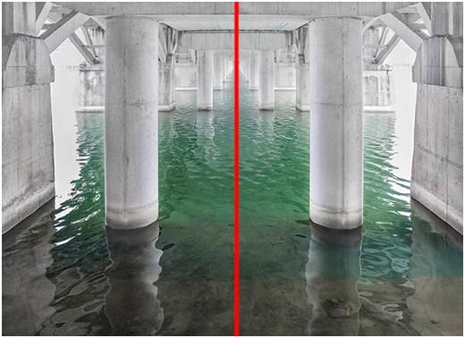 因?yàn)橥敢暫軓?qiáng),這個(gè)片子遠(yuǎn)處匯聚點(diǎn)處的亮度還是有些過亮,而且裁切后,場景也不是太開闊,片子不再是寬幅的,像素肯定也會(huì)降低??纯次覀兡懿荒茉龠M(jìn)一步的改善一下。