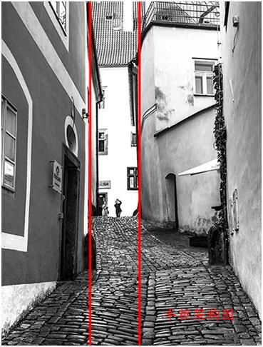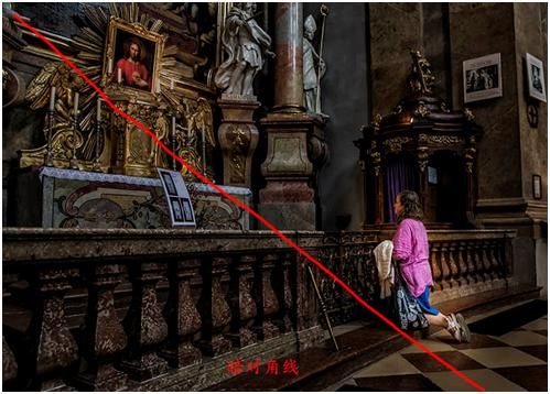 我們看到下面這張圖也是以對(duì)角線的構(gòu)圖形式,只不過這個(gè)對(duì)角線從畫面中明顯的看不出它是一個(gè)對(duì)角線,而是畫面中一些重要元素形成的一個(gè)對(duì)角線趨勢,我們暫且把它稱之為暗對(duì)角線。