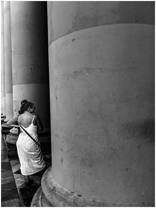 第一張圖也是在街上拍的,女人肯定在與柱子后面的人在交流,是什么樣的人?他們?cè)谧鍪裁??其?shí)都留給了觀者,這就屬于開放式構(gòu)圖。