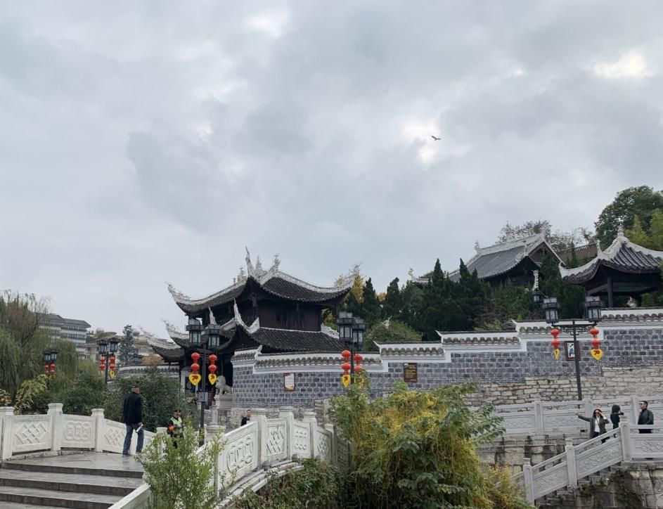 第三部分是甲秀樓后面的翠微園。翠微園古稱南庵,是由翠微閣、拱南閣、龍門書院組成的明清風格的蘇州園林式庭院,明正德四年,王陽明在貴陽文明書院講學時曾有《南庵次韻二首》《徐都憲同游南庵次韻》等詩記載當時勝景,如“隔水樵漁亦幾家,緣岡石路入溪斜。松林晚映千峰雨,楓葉秋連萬樹霞”“巖寺藏春長不夏,江花映日艷于桃。山陰入戶川光暮,林影浮空暑氣高。樹老豈能知歲月,溪清真可鑒秋毫”等清麗佳句。