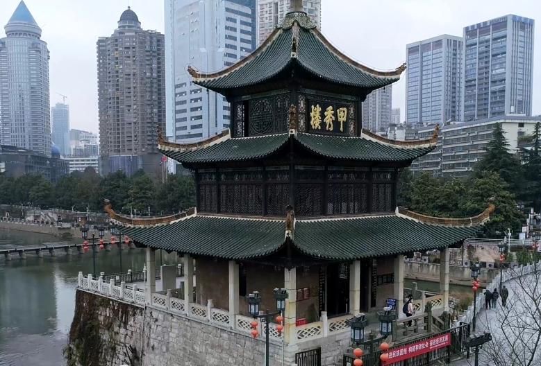 屹立在南明河上的甲秀樓,是繁鬧市區(qū)中不可多得的清幽之地,景區(qū)內(nèi)古色古香,景區(qū)外高樓林立,在現(xiàn)代文明中閃爍著歷史的光芒,昂揚著“甲秀天下”的城市精神風貌。