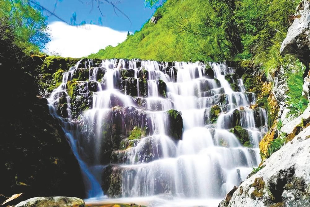 盛夏,從被金黃油菜花和綠油油的麥苗環(huán)繞的村莊,行駛到奇絕雋秀的高山峽谷,沿途群山涌翠、花木繁茂,古木參天、芳香馥郁、鳥語(yǔ)花香,美景讓人賞心悅目;野兔、馬鹿、馬雞等野生動(dòng)物出沒于河畔叢林,讓人感到野趣十足;達(dá)坂紅葉、十二生肖盤、神龍?zhí)镀俨?、圣母天池、藥水泉瀑布,讓人流連忘返;雪山、峽谷、奇峰、石林、角巖、懸崖、峭壁等地貌群,讓人心醉神迷,會(huì)有“車在路上行、人在畫中游”的驚艷,也會(huì)被“樹下有鮮花、花中有飛蝶,山巔云霧繞、溪澗有飛瀑”的大美所征服。