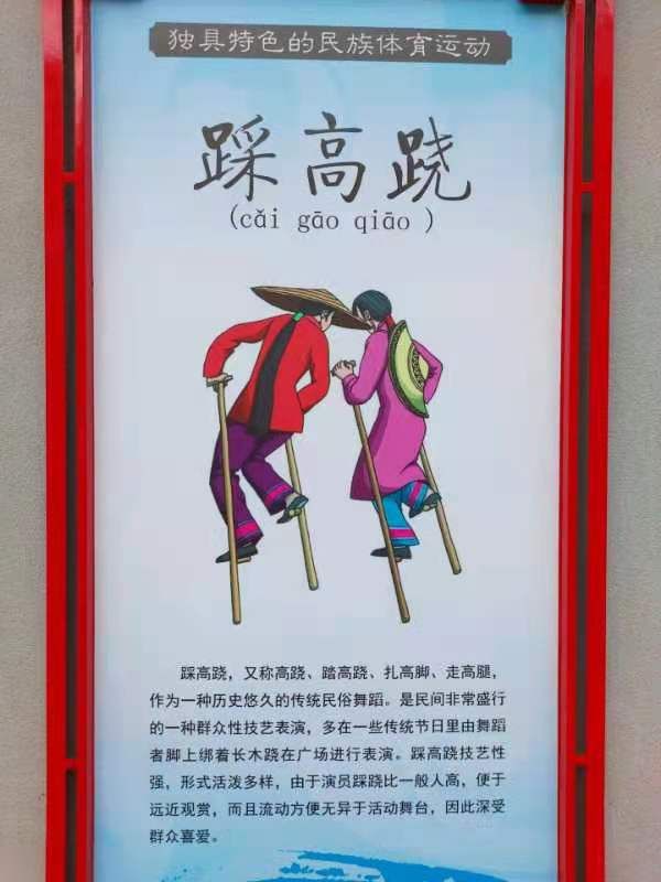 踩高蹺,又稱(chēng)高蹺、踏高蹺、扎高腳、走高腿,作為一種歷史悠久的傳統(tǒng)民俗舞蹈。是民間非常盛行的一種群眾性技藝表演,多在一些傳統(tǒng)節(jié)日里由舞蹈者腳上綁著長(zhǎng)木蹺在廣場(chǎng)進(jìn)行表演。踩高蹺技藝性強(qiáng),形式活潑多樣,由于演員踩蹺比一 般人高,便于遠(yuǎn)近觀賞,而且流動(dòng)方便無(wú)異于活動(dòng)舞臺(tái),因此深受群眾喜愛(ài)。
