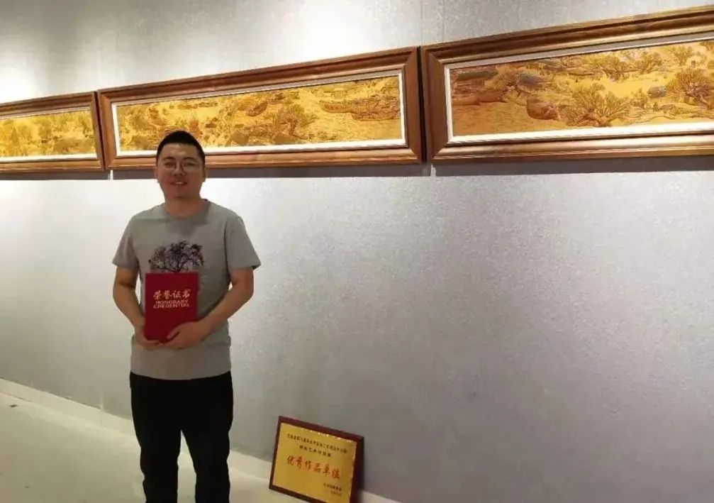 包頭市東河區(qū)皮雕畫非遺項目傳承人張衛(wèi)祥,2012年畢業(yè)于中央美術(shù)學(xué)院,受老師影響,畢業(yè)后一直致力于把皮雕與古代山水畫結(jié)合,使皮雕畫展現(xiàn)出古樸典雅的風(fēng)格,許多皮雕作品屢屢獲獎。