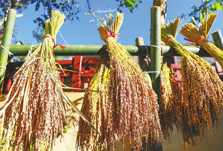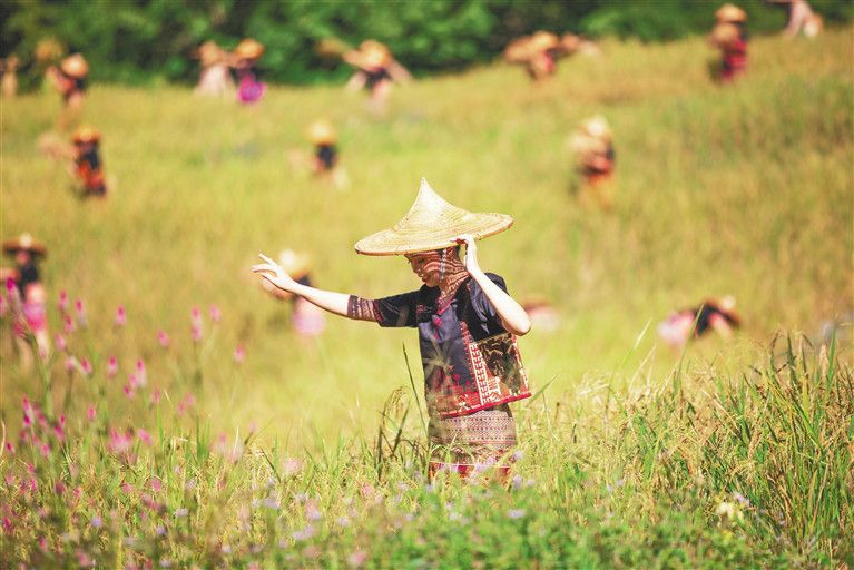 11月21日,在白沙黎族自治縣青松鄉(xiāng)擁處村、青松村等村莊的山坡上、山谷里,放眼望去,在群山疊翠間,漫山遍野都是金黃色的山蘭旱稻,這般豐收的場景尤為賞心悅目。當(dāng)天,2021年白沙“啦奧門”山蘭文化節(jié)在青松鄉(xiāng)擁處村啟幕,活動(dòng)旨在讓更多的人知曉海南黎族山蘭旱稻的農(nóng)耕文化,進(jìn)一步提升“啦奧門”山蘭文化節(jié)民族品牌活動(dòng)的影響力,助力鄉(xiāng)村振興“加速跑”。