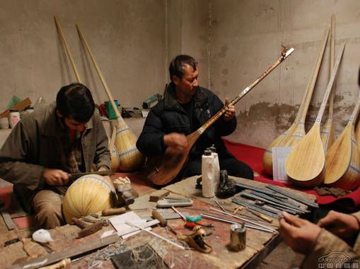 “冬不拉”是哈薩克族的撥弦樂(lè)器,現(xiàn)在使用的冬不拉有樂(lè)隊(duì)使用的高音、中音、和低音冬不拉,為凸底,琴腹梨形,多為紅松木,銅、骨制品,采用銅絲弦,自成一組,可演奏豐富多彩的音樂(lè)作品,也可用來(lái)伴奏歌舞。高、中音冬不拉也可以獨(dú)奏,也可彈唱。另有民間冬不拉為平底樺木制,經(jīng)纏絲弦為音品,琴腹為鏟形,張兩根弦,用右手彈奏,為哈薩克牧民家中必備的樂(lè)器,自彈自唱或獨(dú)自演奏?!榜R和冬不拉是哈薩克人民的翅膀”。哪里有帳篷,哪里就有冬不拉的琴聲。