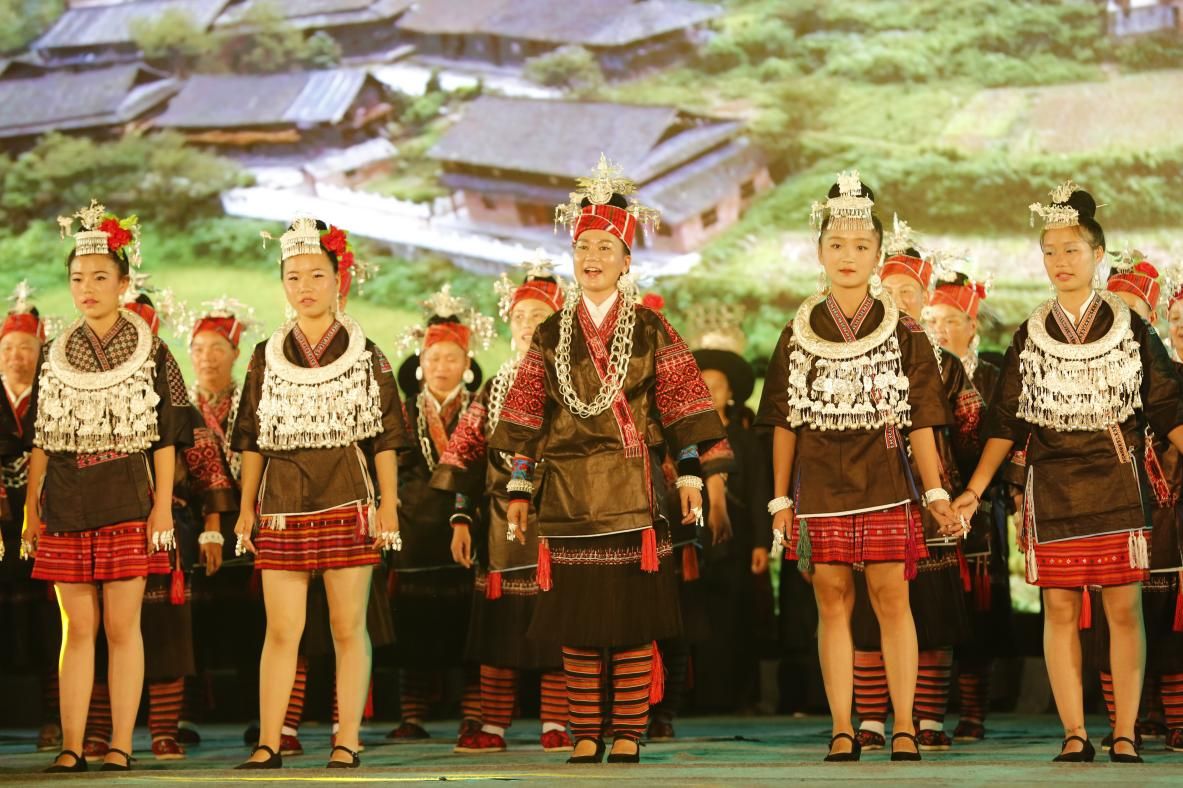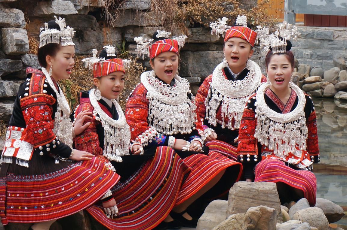 苗族飛歌以劍河革東鎮(zhèn)所在地的飛歌最為優(yōu)美。因?yàn)楦咭舨糠秩渴褂谜嫔ぐl(fā)音,音調(diào)高亢嘹亮,豪邁奔放,曲調(diào)明快,穿透力強(qiáng),有很強(qiáng)的感染力,唱起來聲振山谷,山鳴谷應(yīng),幾里外都能聽到。演唱的場合可在酒場上唱,可在“游方場”(青年男女談情說愛的場所)上唱,也可在山澗田野忙農(nóng)活或是游玩時演唱。