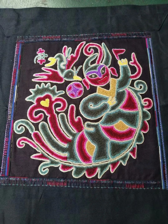 臺(tái)江苗繡的圖畫(huà)紋飾豐富,有造型獨(dú)特的飛禽走獸、花鳥(niǎo)魚(yú)蟲(chóng),還將人與大自然的其他動(dòng)植物在繡片上融為一體,體現(xiàn)了苗族人民對(duì)自然萬(wàn)物的崇拜,同時(shí)也折射出苗族屢經(jīng)遷徙的歷史變遷。