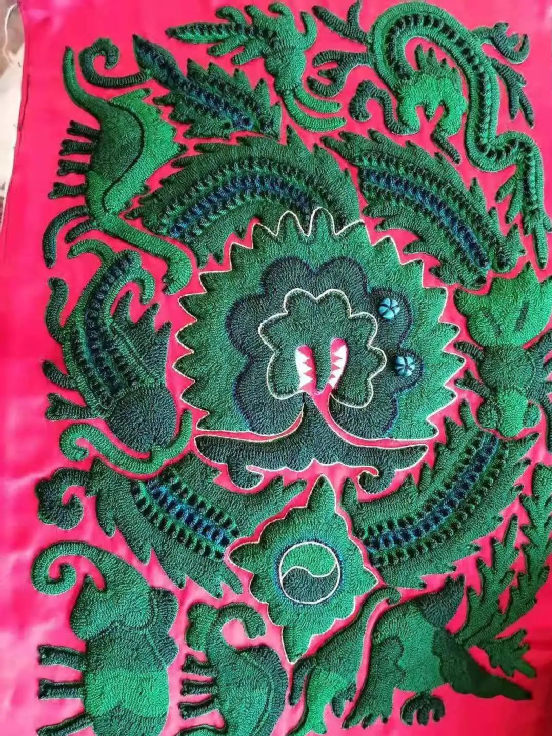 貴州臺(tái)江苗繡是苗族刺繡中最具典型意義的民間藝術(shù)品之一,一針一線,都是東方審美的極致體現(xiàn)。極為大膽的配色,夸張生動(dòng)的圖案,對(duì)稱和諧的紋樣,成就了古樸精致又絢麗多彩的苗繡。每一個(gè)繡娘都有自己的見(jiàn)解,她們借物隨心,見(jiàn)山繡山,見(jiàn)水繡水,花樣百出,栩栩如生!
