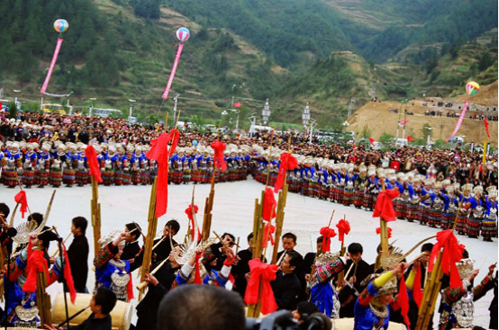 貴州雷山苗族至今仍保留“以十月為歲首”的紀(jì)年法。每年的農(nóng)歷十月,雷山苗寨一派歡騰,開展極富特色的辭舊迎新活動(dòng)。