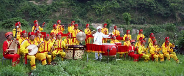 民俗性。建始絲弦鑼鼓產(chǎn)生及發(fā)展是以廣泛的民俗活動為載體的。因為獨特的演出形式,其樂隊配置可大可小,小到5人的基本配置,大到幾十人的鑼鼓喧天。既可登大雅之堂,又可進入千家萬戶;既可坐著表演,又可在行進中演出。它既是表演藝術(shù),又可以和紅白喜事渾然一體,成為紅白喜事活動主體不可分割的部分,所以建始絲弦鑼鼓廣泛用于福壽、生子、婚喪、嫁娶、造宅、祝壽、開業(yè)慶祝等民間民俗活動,而在不同民俗活動中,又有著不同的使用禮儀和禁忌。