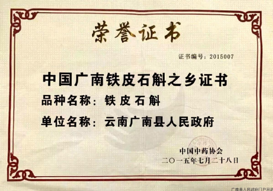 2013年,國(guó)家質(zhì)量技術(shù)監(jiān)督局批準(zhǔn)“廣南縣鐵皮石斛地理標(biāo)志保護(hù)產(chǎn)品”證書(凌埡公司提供)