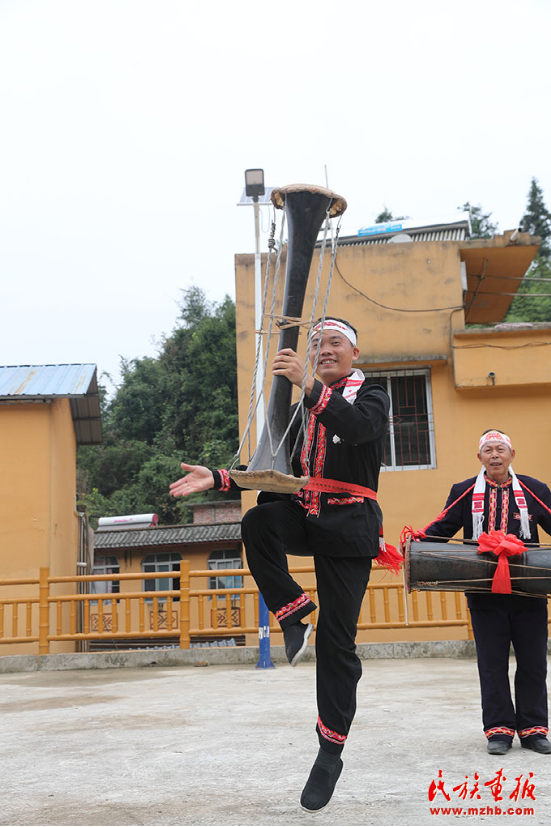 9月23日,為慶祝第五個中國農民豐收節(jié),羅運村村民盤石輝等人通過《十二月耕作歌》《釣魚舞》《黃泥鼓舞》等歌舞形式,慶祝今年村里八角、甜茶、竹筍等產業(yè)喜獲豐收。