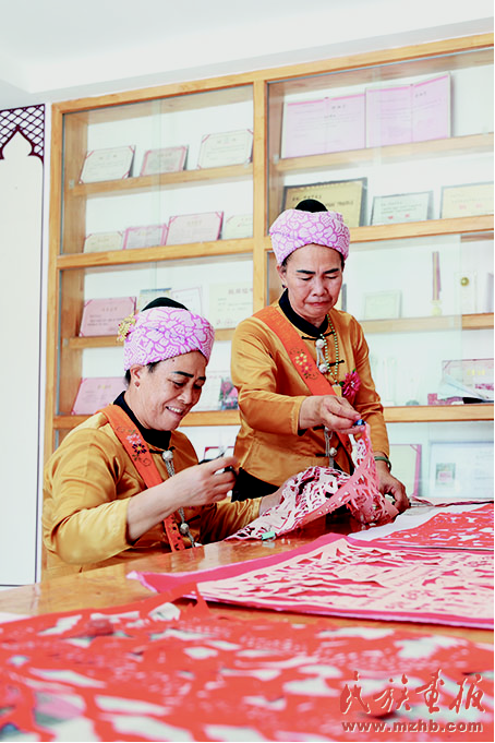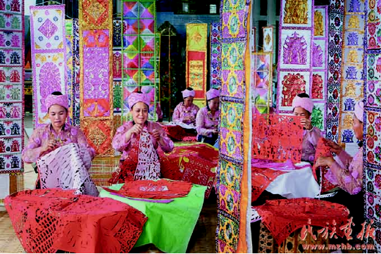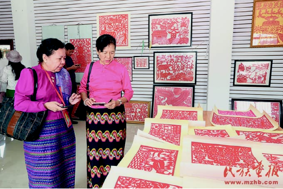 工藝美術(shù)專(zhuān)家在邵梅罕傣族剪紙藝術(shù)館考察。
