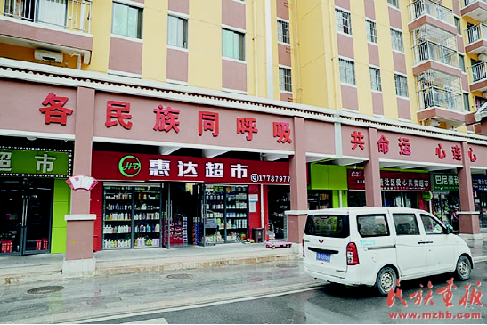 民族團結標語在和諧社區(qū)隨處可見。
