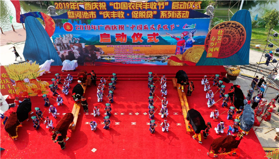 都安瑤族自治縣群眾打起扁擔(dān),歡慶“中國(guó)農(nóng)民豐收節(jié)”。