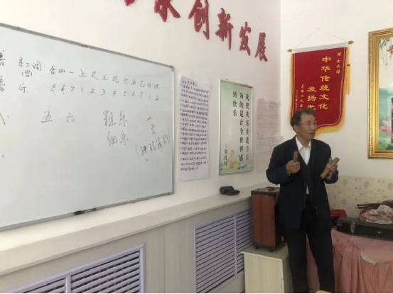炎炎夏日,伴隨著古樸悠揚的古樂曲聲,小編走進烏蘭察布市商都縣七臺鎮(zhèn)“非遺”文化街內(nèi)的古樂曲工作室,78歲的古樂曲“非遺”傳承人南文述正在帶領學員學習演奏古樂曲《將軍令》,室內(nèi)板胡、中阮、巴烏、笙、塤、三弦、鼓等樂器或厚重低沉或清脆悅耳,有時又相融和鳴,生動演繹著邊塞古戰(zhàn)場上戰(zhàn)士保衛(wèi)家國的壯志豪情。