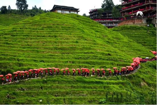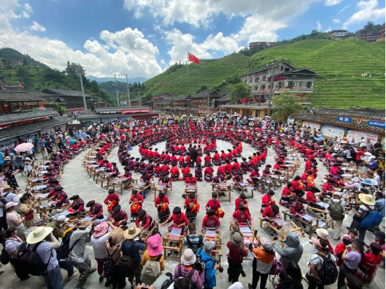 2014年,龍勝瑤族服飾(紅瑤服飾)以其精湛的手工藝和文化底蘊(yùn)入選國家級(jí)非物質(zhì)文化遺產(chǎn)代表性項(xiàng)目名錄擴(kuò)展項(xiàng)目名錄。如今的“曬衣節(jié)”已不僅是紅瑤的傳統(tǒng)佳節(jié),“農(nóng)歷六月六,廣西龍脊看紅衣”等曬衣節(jié)系列活動(dòng)已成為桂林山水游的一張名片,讓各地游客充分感受多姿多彩的民族風(fēng)情。紅瑤同胞們用自己獨(dú)特的方式,為中國共產(chǎn)黨成立100周年獻(xiàn)上自己的祝福。