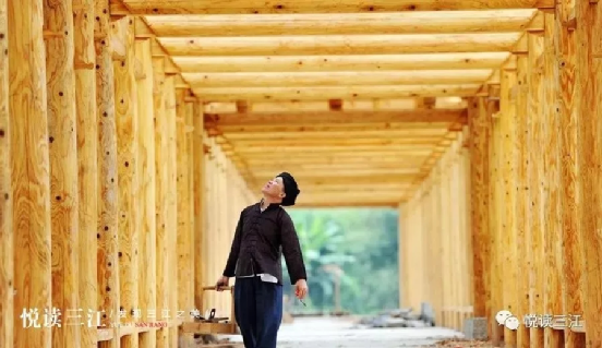 2003年,楊家第四代木構(gòu)傳承人楊求詩(shī),成功出師。由于深得祖?zhèn)骷妓?,加之勤奮好學(xué)、悟性高,楊求詩(shī)很快成為當(dāng)?shù)赜忻哪窘硯煾?。楊求?shī)建造的木建筑有鼓樓、風(fēng)雨橋、吊腳樓、戲臺(tái)、寨門、涼亭等,不僅繼承“干欄”式建筑的優(yōu)良特點(diǎn),而且內(nèi)設(shè)吊腳,使建筑更加美觀,創(chuàng)立了別具一格的木建筑工藝體系。最近幾年,他陸續(xù)承接了一些外地的莊園、度假村、風(fēng)雨橋、長(zhǎng)廊、寨門等項(xiàng)目,但更多的還是修建本地鼓樓,三江的平懂、皇朝、獨(dú)峒的鼓樓均出自他的雙手。