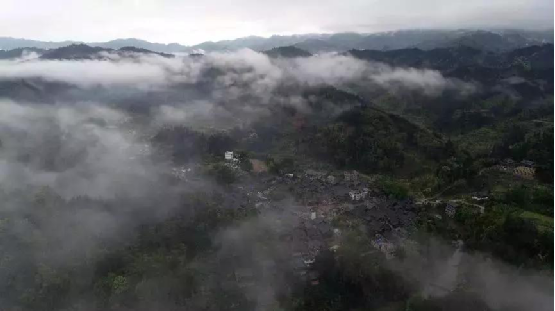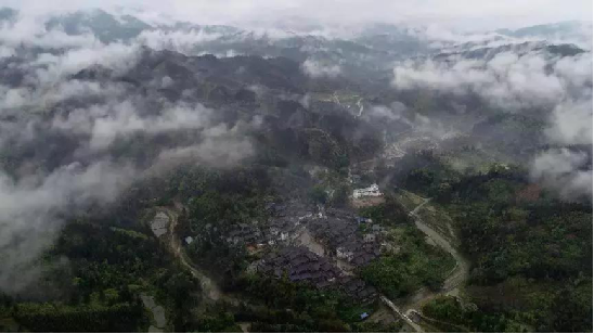 4月14日,無(wú)人機(jī)航拍的三江侗族自治縣洋溪鄉(xiāng)高露村中寨屯美景