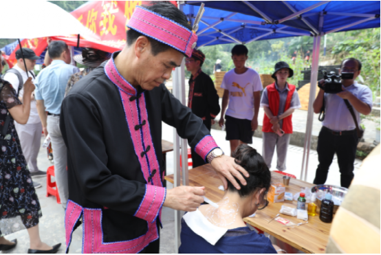 本次活動(dòng)以2020年“文化和自然遺產(chǎn)日”的“非遺傳承,健康生活”為主題,重點(diǎn)圍繞傳統(tǒng)醫(yī)藥項(xiàng)目保護(hù),普及“非遺”知識(shí)和健康生活理念,營(yíng)造全社會(huì)共同參與、關(guān)注和保護(hù)傳承優(yōu)秀傳統(tǒng)文化濃厚氛圍而開展。邀請(qǐng)十位瑤醫(yī)藥傳承人帶領(lǐng)40多位瑤醫(yī)弟子各顯神通,在現(xiàn)場(chǎng)開展非遺項(xiàng)目義診活動(dòng),為游客免費(fèi)問疹,展示泡藥療法、針灸療法、燈草療法、坐浴療法、拉伽通灸療法等10種技法?,幷锩恳粦羧思夷贸瞿檬纸^活在自家進(jìn)行現(xiàn)場(chǎng)展示,黃泥鼓制作、樹葉豆腐制作、瑤族織繡技藝、釀酒技藝、舂糍粑、原創(chuàng)歌曲展示等,豐富多彩的各種技藝,讓游客流連忘返。