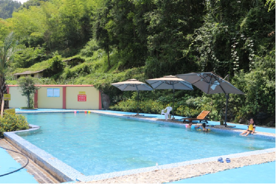 大人們在青山綠水間泡溫泉、賞風景,孩子們在兒童水上樂園嬉戲玩鬧,中晚飯點時在農(nóng)家樂里吃著當?shù)亓魉B(yǎng)殖的生態(tài)魚,體驗著鄉(xiāng)村風情,舒適愜意遍布全身。