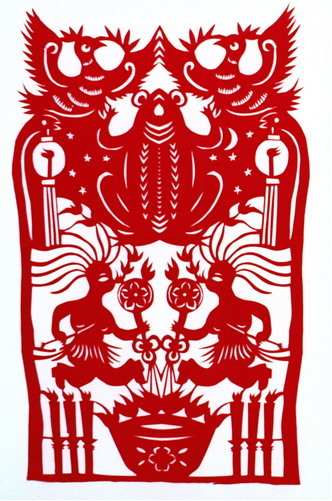 和林格爾剪紙有著悠久的發(fā)展歷程,世世代代在這里生活的北方游牧民族開創(chuàng)了這里的剪紙藝術(shù)。和林格爾歷史上有眾多民族在這塊土地上生息繁衍,是北方游牧民族和中原農(nóng)耕民族交匯融合的重要地區(qū)之一,先后有土方、鬼方、獫狁、樓煩、林胡、匈奴、突厥、鮮卑、烏桓、契丹、女真、蒙古、滿等北方民族駐牧;后又有清代著名的“走西口”——清朝向西北用兵,在和林格爾開辟驛站,大力開發(fā)西部,山西、陜西等地農(nóng)民紛紛來此開荒,在此定居,農(nóng)耕文化與草原文化再一次融合。這些為和林格爾剪紙的創(chuàng)作提供了肥沃的土壤;繼而逐漸形成了和林格爾剪紙獨(dú)具特色的藝術(shù)形態(tài)。目前,和林格爾縣 13 個(gè)鄉(xiāng)鎮(zhèn),4 萬(wàn)農(nóng)戶,僅有 18 萬(wàn)多人口的和林格爾縣擁有業(yè)余剪紙人員超過 5000 人,年齡最大的近百歲,最小的僅有七八歲。