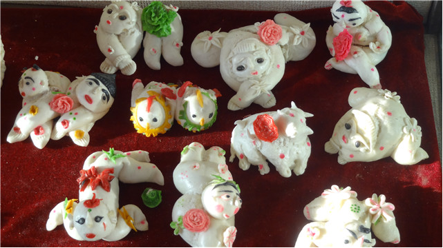 現(xiàn)在人們在春節(jié)、清明節(jié)、“寒食節(jié)”,農(nóng)歷七月初五,嬰兒鬧滿月,過十二歲生日,老人過壽等活動中,農(nóng)家婦女用白面按當?shù)亓曀啄笾聘鞣N面塑制品,象征萬事如意,多福多壽,風調(diào)雨順的美好愿望,由于是自作自用,盡管水平不一,并不影響食用。