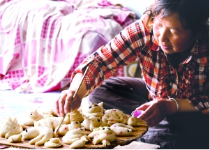 在和林格爾縣的廣大農(nóng)村地區(qū),有些年長的婦女幾乎都是技藝高超的面塑高手。就捏制風格來說,和林地區(qū)面塑風格古樸、粗獷、豪放、深厚,卻不乏細致、優(yōu)美、精巧。它主要以以面粉為主料,調(diào)入不同色彩的食用顏料,用手指和簡單工具剪刀、梳子、篦子、竹針等,塑造各種栩栩如生的形像。