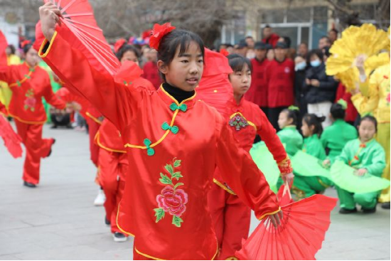 在[資2]讓人流連忘返的民俗演出中,最引人矚目的便是來自討思浩小學(xué)的學(xué)生們帶來的自“天倉(cāng)節(jié)”祈福儀式演變而成的“天倉(cāng)舞”表演,孩子們有板有眼的舞蹈動(dòng)作完全不遜色于專業(yè)的演出隊(duì)伍,不僅將討思浩特有的傳統(tǒng)民俗淋漓盡致的展現(xiàn)出來,更是對(duì)西北農(nóng)耕文化的有力傳承。據(jù)介紹,2018年12月開始,村委會(huì)聯(lián)合討思浩小學(xué)于每周五下午開設(shè)了民俗文化特色課,天倉(cāng)舞傳習(xí)、民俗歷史講座等內(nèi)容的設(shè)置,讓孩子們對(duì)家鄉(xiāng)的歷史文化更加了解,增添了對(duì)家鄉(xiāng)的認(rèn)同感,也讓保留了幾百年的民俗文化得到了傳承。