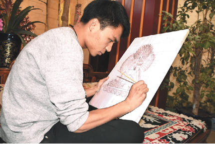 技藝上的登峰造極,次嘎把這一秘笈歸結(jié)成幾個(gè)平常的字眼:“興趣和堅(jiān)持”。從小受家族文化的熏陶,兩個(gè)兒子對(duì)傳統(tǒng)文化有著濃厚的興趣。薪火相傳也成了次嘎肩上的責(zé)任。20出頭的大兒子扎西拉達(dá)穿著白T恤,皮膚白皙、手指纖長(zhǎng)、陽(yáng)光帥氣,立志要子承父業(yè)。“父親告訴我即便是要做一名手工藝人,也不能放棄對(duì)文化知識(shí)的學(xué)習(xí),從小便把我送到內(nèi)地學(xué)習(xí)?,F(xiàn)在,我長(zhǎng)大了,該回來(lái)了?!?扎西拉達(dá)的話語(yǔ)堅(jiān)定。