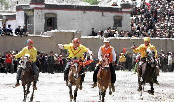 藏歷4月10日到28日,是江孜傳統(tǒng)的節(jié)日—達(dá)瑪節(jié),藏語意為跑馬射箭。據(jù)傳說江孜法王繞丹貢桑帕巴桑布,是薩迦王朝的內(nèi)務(wù)大臣,又是江孜法王,在群眾中頗有威望。帕巴白去世后,他的弟子每年做祭祀,以示紀(jì)念。后因戰(zhàn)亂,祭祀中斷。至藏歷火鼠年(公元1408年)繞丹貢桑帕任江孜法王,遵其父貢桑帕的遺囑,恢復(fù)祭祀。這一年藏歷4月10日至4月27日,繞丹貢桑帕為其祖父念經(jīng)祭祀,直到28日,開始進(jìn)行娛樂活動。內(nèi)容主要是曬唐卡畫、宗教文藝活動等。除此之外,還有角力、跑馬、拋石頭等娛樂活動。這些活動,全由法王的部下、兵丁、傭人承辦。從這年開始,固定這段時間為每年一度的祭祀盛典節(jié)日。到了扎西繞丹帕(公元1447年)統(tǒng)轄江孜的時候,娛樂活動更為豐富,除上述內(nèi)容外,還增加了跑馬射箭。于是流行為盛大的江孜達(dá)瑪節(jié)。